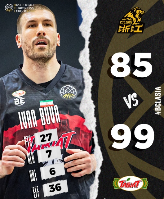06月08日讯 亚冠联赛小组赛,CBA冠军浙江广厦85-99不敌西亚超级联赛亚军、伊朗球队塔比亚特,遭遇两连败。