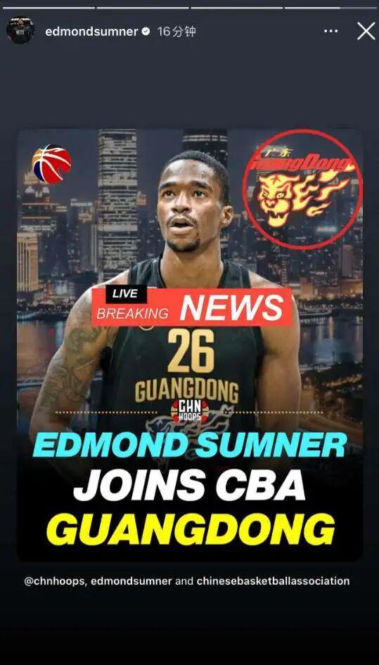 萨姆纳个人社媒更新,转发了自己将加盟广东男篮的爆料消息。不过,这条消息很快被删除。据此前媒体人chnhoops爆料称,上赛季CBA得分王艾德蒙-萨姆纳将在新赛季加盟广东男篮。但很