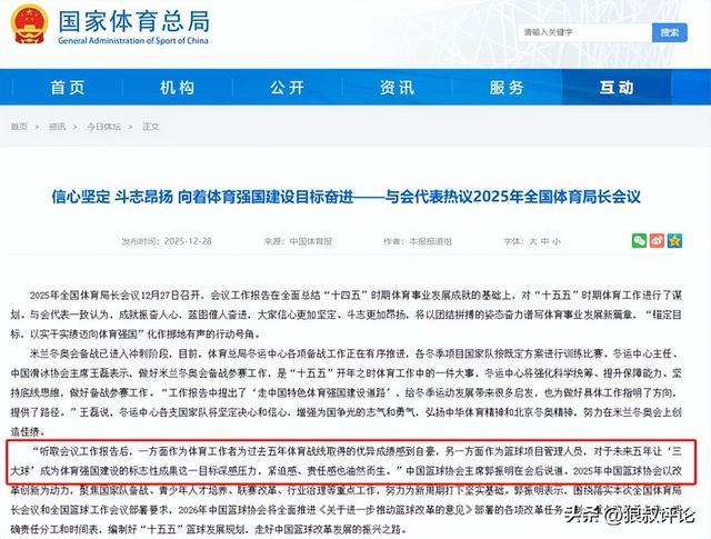 北京时间12月29日,中国篮协主席郭振明在参加2025年全国体育局长会议期间对《中国体育报》表示:“听取会议工作报告后,一方面作为体育工作者为过去五年体育战线取得的优异成绩