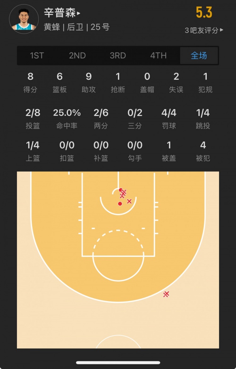 黄蜂42号秀 KJ-辛普森 登场28.0分钟
