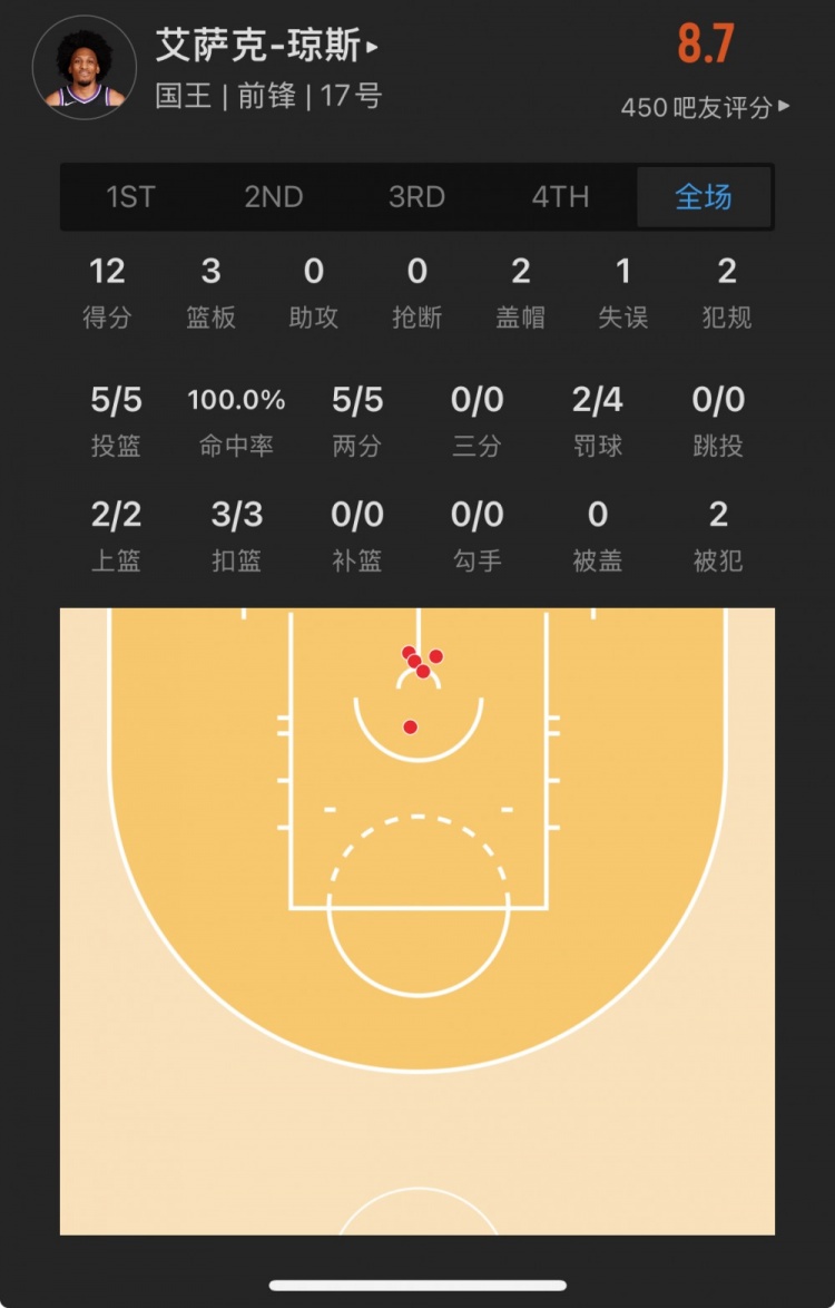 国王落选秀 艾萨克-琼斯 登场18.2分钟
