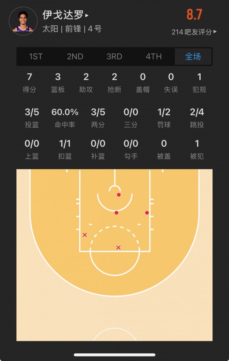 太阳40号秀 奥索-伊戈达罗 登场28.0分钟