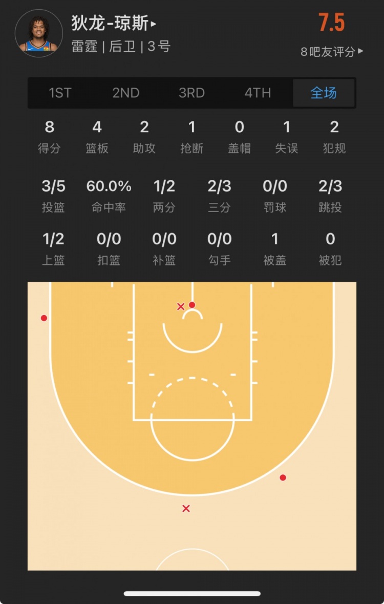 雷霆26号秀 狄龙-琼斯 登场15.7分钟