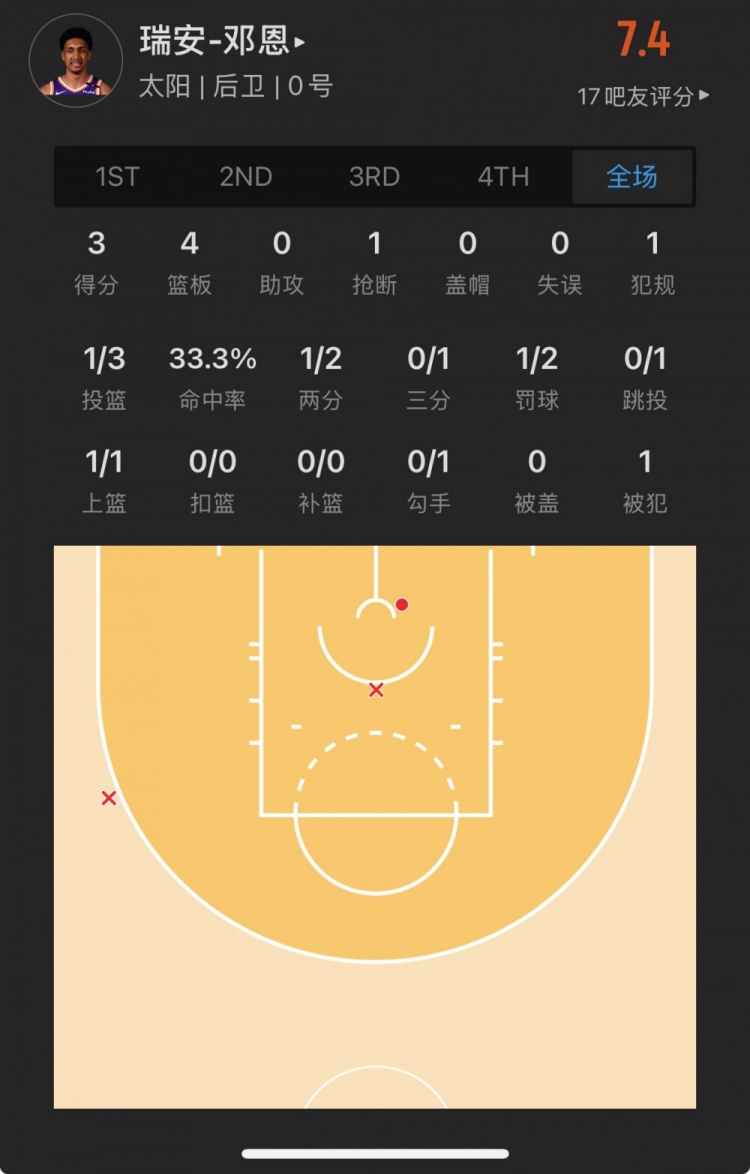 太阳28号秀 瑞安-邓恩 登场12.1分钟