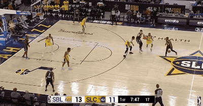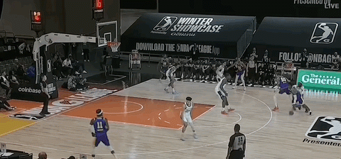 赛季至今,布朗尼在发展联盟参加了11场常规赛。20+5+5的表现就像是另一个维度的全能詹姆斯,也有单场狂砍39分的高分代表作。然而我们细看会发现,布朗尼这场均20+的含金量其实也没那么高,因为他场均17.5次的出手数也是南湾湖人队内最多。