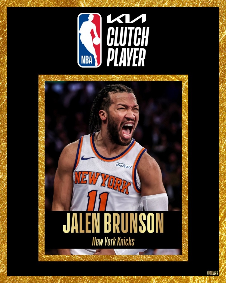 NBA官方:尼克斯球星布伦森荣获本赛季NBA年度关键球员奖!