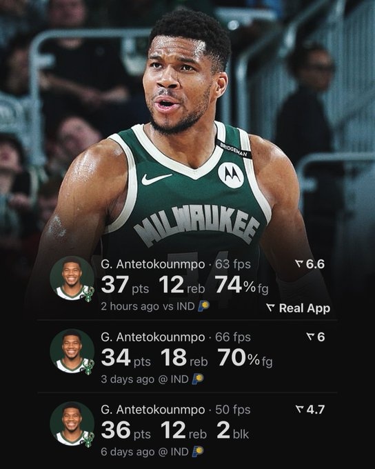据数据媒体Real Sports统计,字母哥是历史上第一个季后赛前三场都以60%以上命中率砍下30分+10篮板的球员!