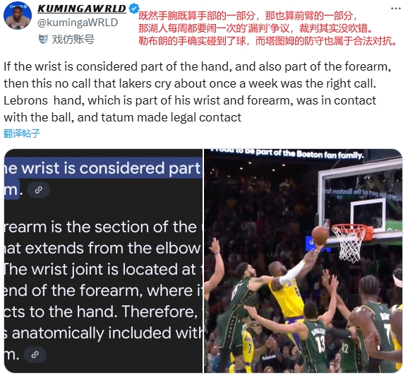 美网友评詹姆斯:看看塔图姆那球如果是他被打不懂会哭成什么样
