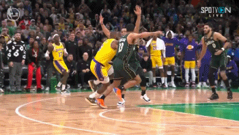 詹姆斯切球击打到爱德华兹