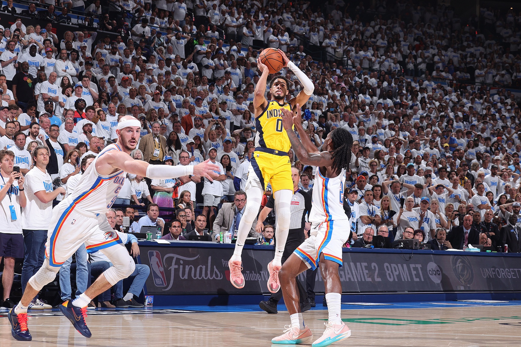 Ramona Shelburne:起伏不定。哈利伯顿G1整体表现平平,只是投进了关键的制胜球。赛后接受ESPN采访时,他自称除了制胜球外“打得糟糕”,承诺会反弹。但G2他并未提升,很大程度上源于雷霆的防守策略。就像西部决赛对付爱德华兹那样,雷霆在进攻回合早期就对哈利伯顿施压,迫使他出球并切断队友的接球路线。哈利伯顿面临的挑战与爱德华兹相同:必须找到方法破解包夹,保持侵略性。