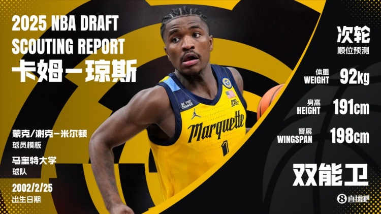 次轮即战力!卡姆琼斯:23岁马奎特技术流双能卫运动能力成短板