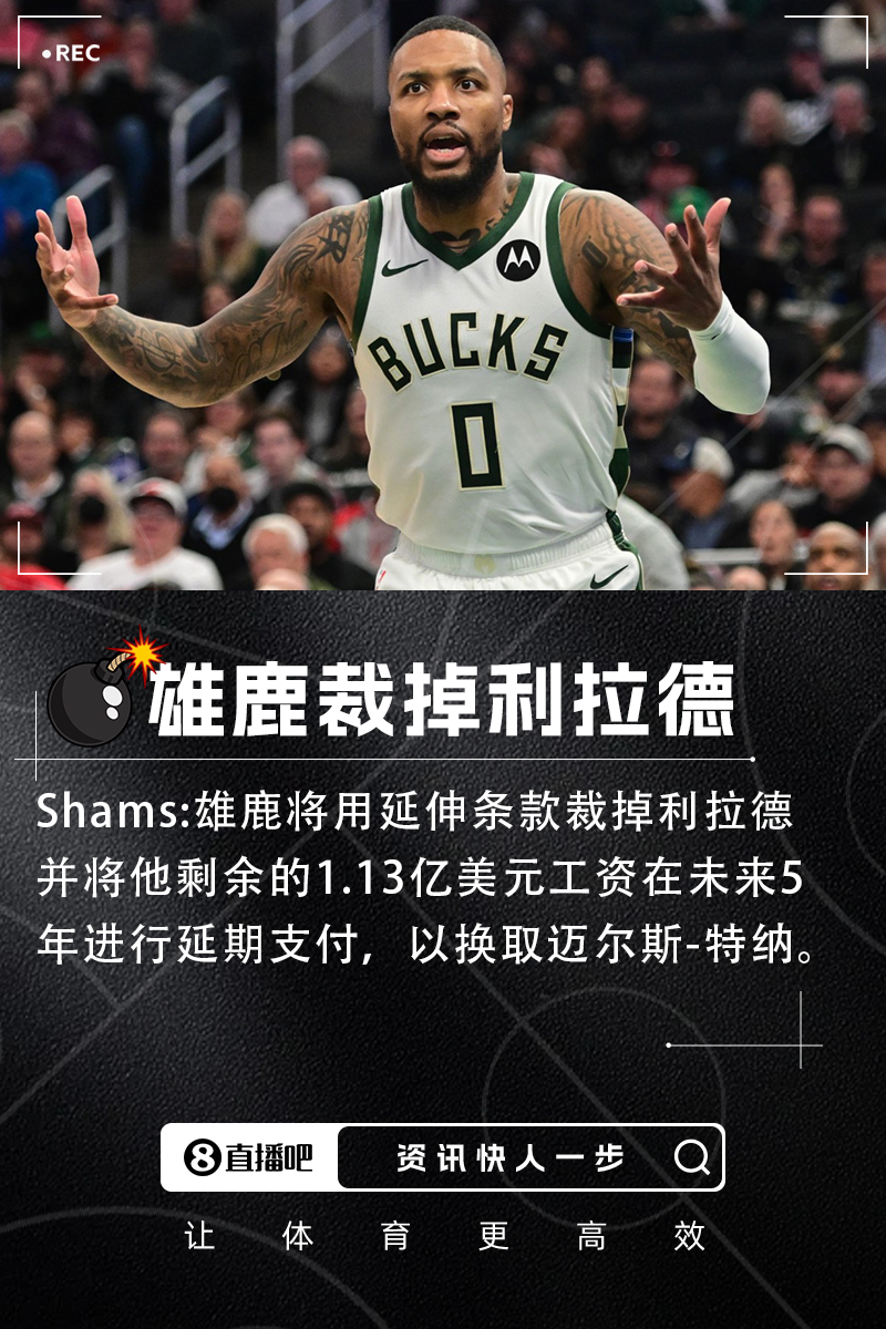 炸裂!!Shams:雄鹿用延伸条款裁掉利拉德以签下特纳