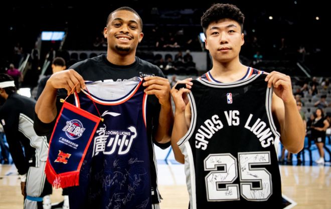 NBA季前赛在今天继续进行,圣安东尼奥马刺队在主场迎来了一场对决,对手是来自CBA联赛的广州龙狮男篮。