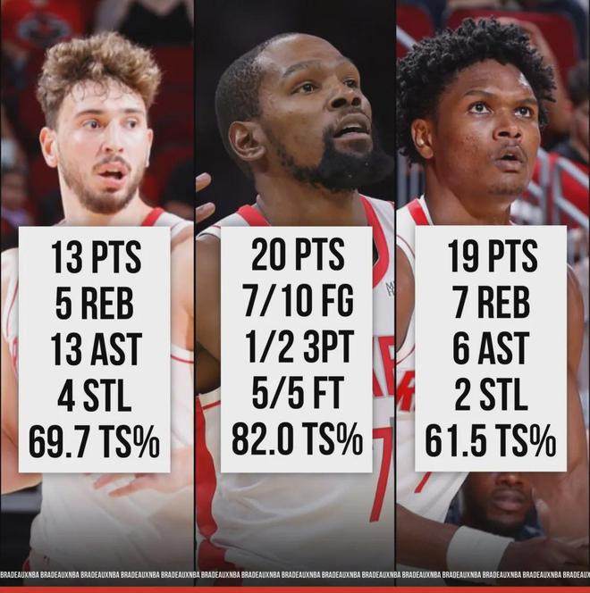 杜兰特首秀!20+19+13!火箭三巨头真有能耐