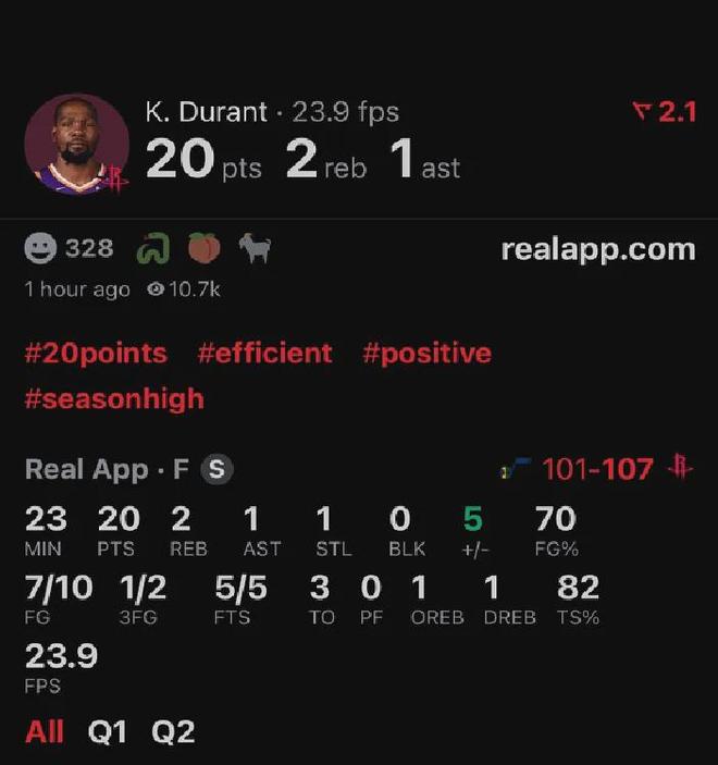 老夫聊发少年狂,与申京配合完成双手暴扣。无解单打高难度跳投命中。怒喷爵士5号秀埃斯-贝利。熟悉的感觉,熟悉的杜兰特。死神完成了身披火箭战袍的首秀,首发出战约23分钟,投篮10