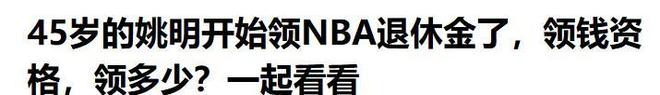 大象新闻:(45岁姚明,已经满足NBA退休金的领取条件2025.10.12)