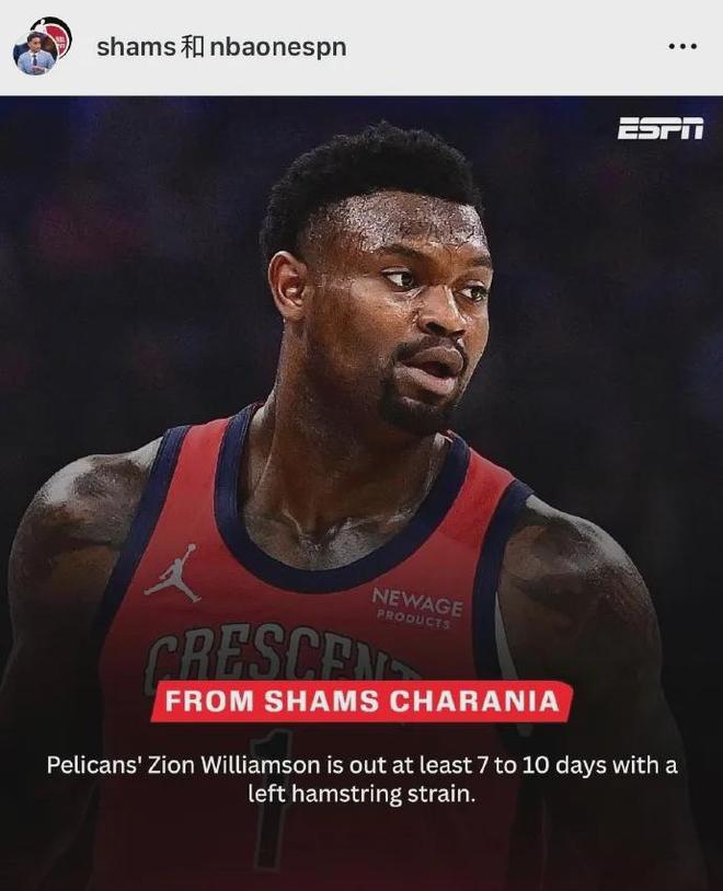 原来锡安又双叒叕不打球了,遭遇左腿筋一级拉伤,至少高挂免战牌一周时间,然而在他休战的首场比赛鹈鹕便拿下了本赛季首场胜利,谁缺谁尴尬。