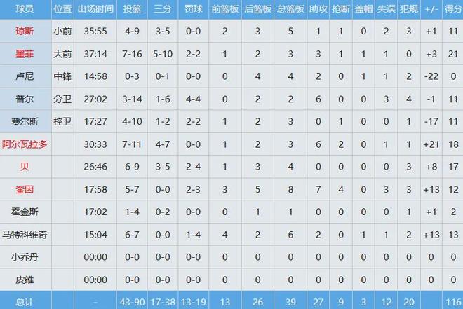 西部垫底大战东部第11,鹈鹕116-112击败黄蜂,拿下本赛季首胜,目前战绩为1胜6负。鹈鹕全队数据如下:黄蜂全队数据如下:不用看比赛,都知道我家胖虎此役肯定疯狂乱杀,把对手锤到娇喘连