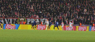 32’角球进攻中,加布里埃尔头球攻门,普罗沃德手球犯规,萨卡罚入点球,阿森纳1比0。