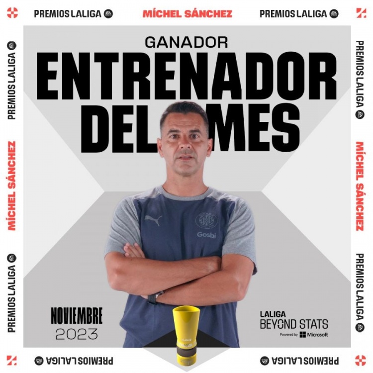官方:赫罗纳主帅米歇尔当选西甲11月最佳教练,本月带队2胜1平