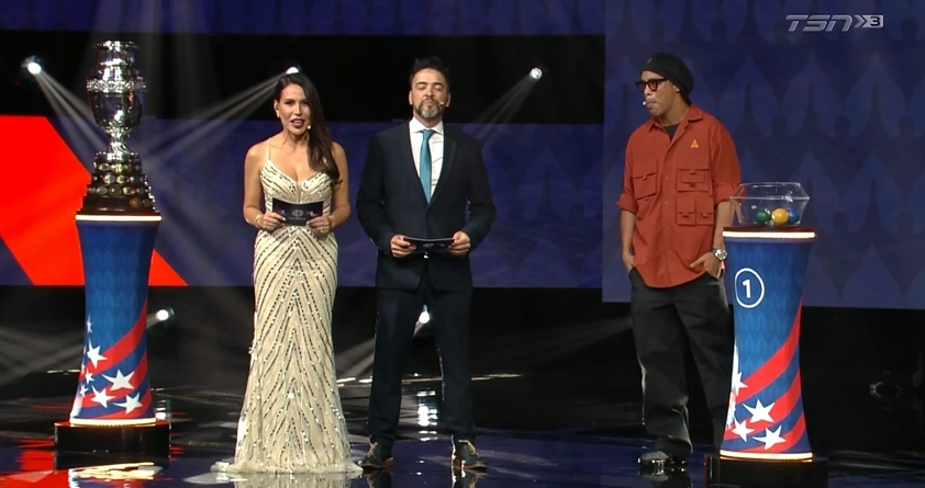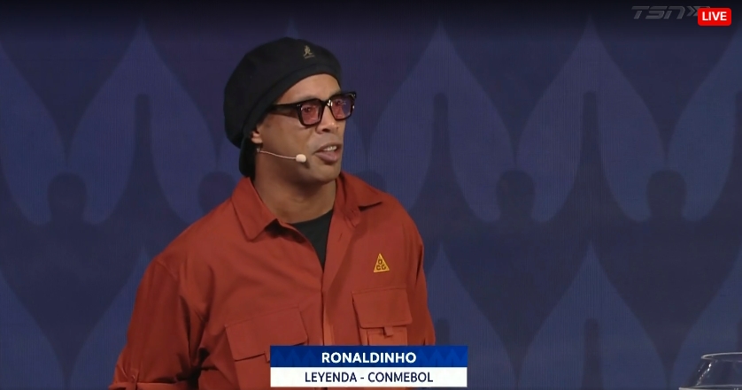 这一身打扮如何南美传奇球星小罗来到美洲杯抽签现场