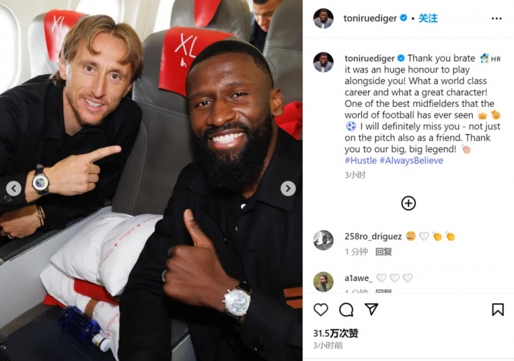 5月23日讯 吕迪格发文祝福了莫德里奇,后者即将离队。