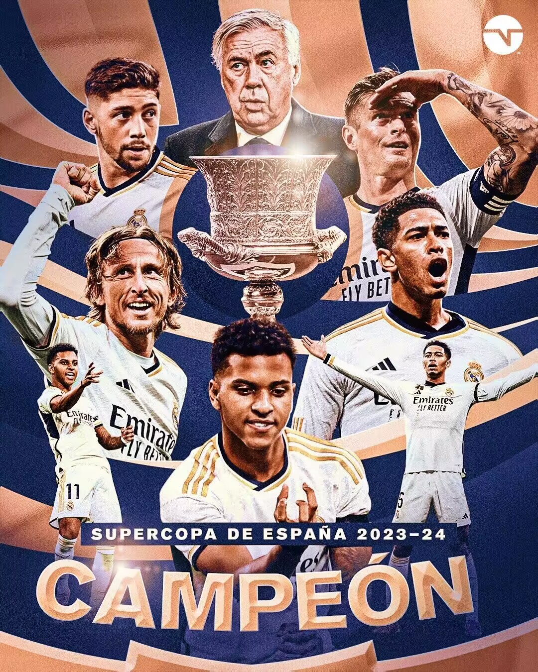 1月15日讯 西超杯决赛,皇马4-1巴萨队史第13次夺冠。