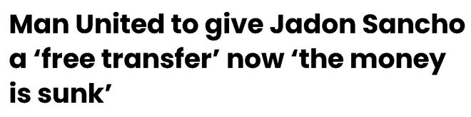 对于认为曼联会激活桑乔一年优先续约条款的说法,博尔森认为俱乐部不会这么做。他分析道:「有人说曼联打算行使选择权,只为了能把他卖掉,我完全不信,他们这么做的可能性很小。我预计他在合同结束后会自由转会,他们基本会让他免费走人。对于一个花了7300万英镑签下的球员来说,这可不是什么好买卖。当然不死,但你还能怎么办?这就是钱打水漂的交易,金钱没了,不管付了多少。曼联只有正视现实,本赛季能找到人承担他的工资,已经很棒了。明年还再来一次?」
