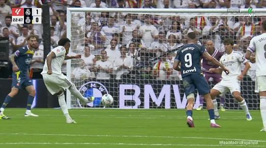 比赛的第22分钟,米利唐禁区前得球之后,右脚突然远射,皮球划出美妙弧线之后飞入球门。值得一提的是,这是皇马此役第一次射正。