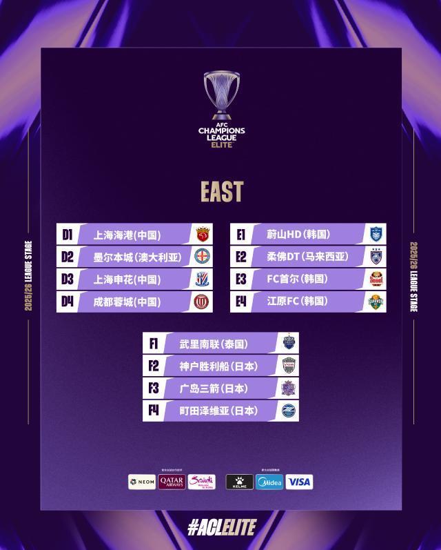 体坛周报全媒体原创北京时间8月15日17:00,亚足联在吉隆坡举行2025/26赛季亚冠精英联赛小组赛抽签仪式。中超3支球队上海海港、上海申花和成都蓉城同分在D组,将先后对阵E、F两