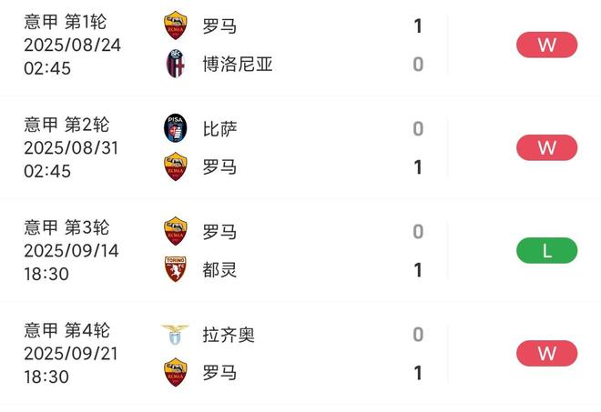 一招鲜!罗马前四轮意甲比赛3胜1负,比分全部都是10