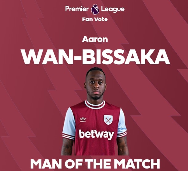 4次抢断+3次过人,万比萨卡当选西汉姆20莱斯特城全场最佳