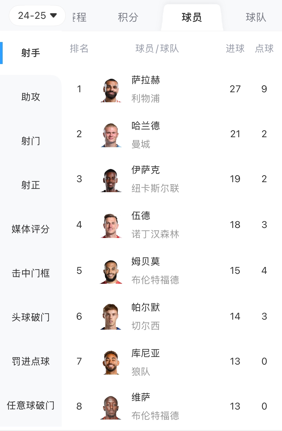 目前在英超的射手榜上,哈兰德排名第二,落后第一的萨拉赫6个进球。