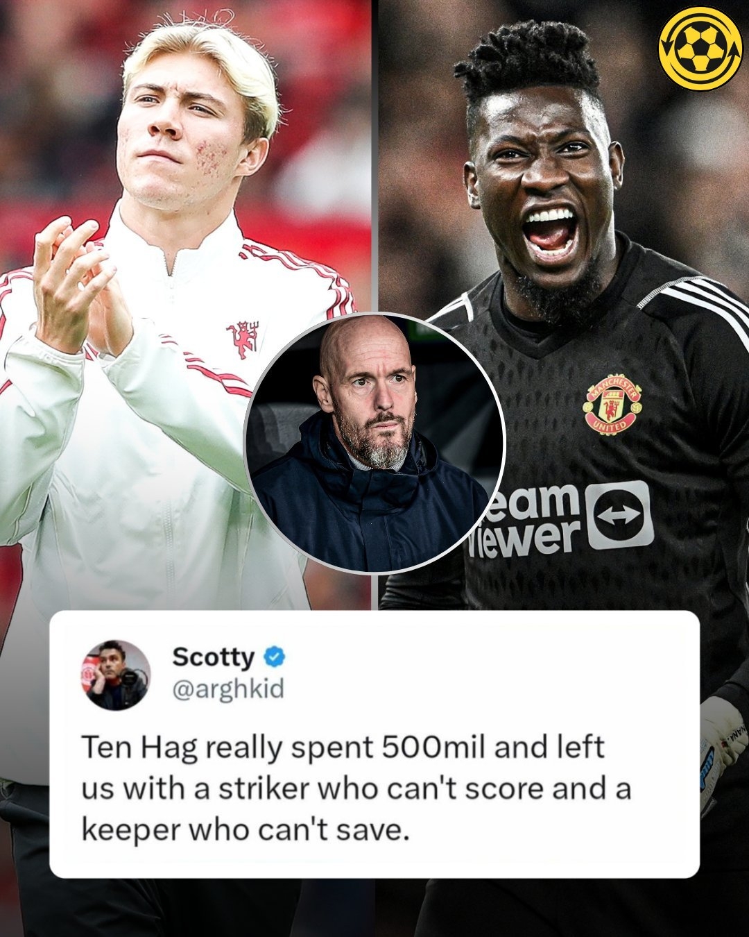 一位曼联球迷发推写道:“滕哈赫真的花了5个亿买人,然后给我们留下了一个不会进球的前锋,和一个不会扑救的门将。”这条推文迅速得到了大量的转发和点赞。