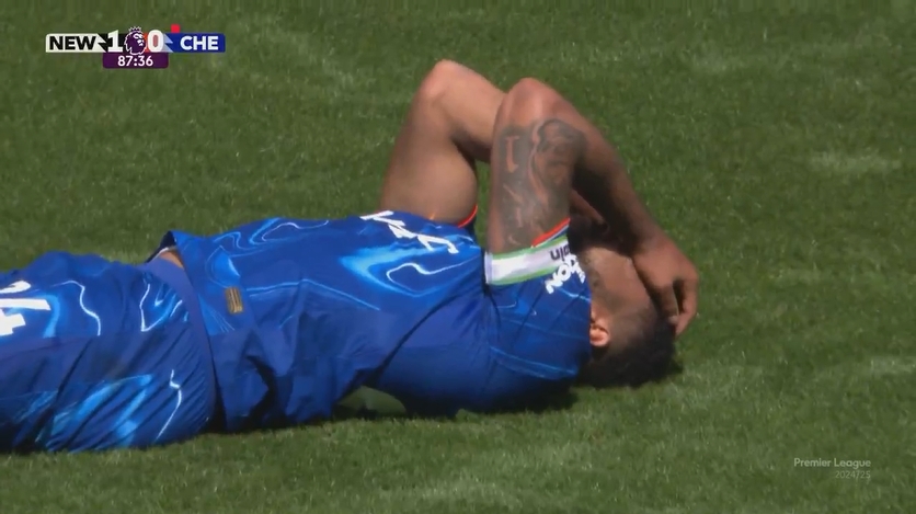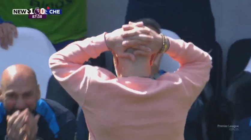 05月11日讯 英超第36轮,纽卡vs切尔西。比赛第88分钟,里斯-詹姆斯头球顶高错失绝平良机,随后他和主帅马雷斯卡隔空展现同款抱头。