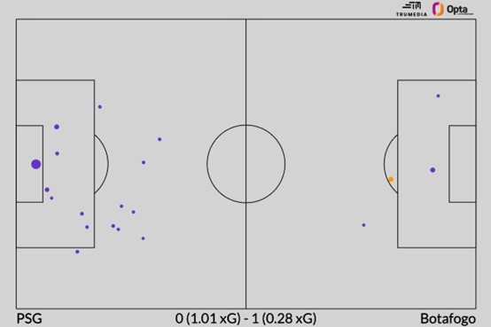 博塔弗戈 vs 巴黎圣日耳曼比赛数据图,博塔弗戈预期进球xG很低,但1比0取胜