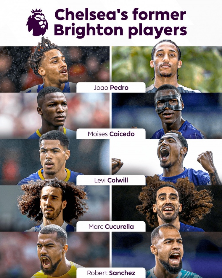 英超晒切尔西队内布莱顿旧将:若昂佩德罗、凯塞多、库库在列