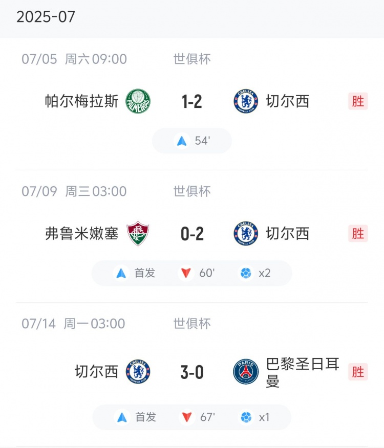 7月14日讯 世俱杯决赛,切尔西3-0击败巴黎圣日耳曼夺冠。切尔西在7月2日以6000万镑签下23岁若昂-佩德罗,后者出战3场比赛打入3球,帮助球队夺冠。其中,1/4决赛奖金1312.5万美元,半
