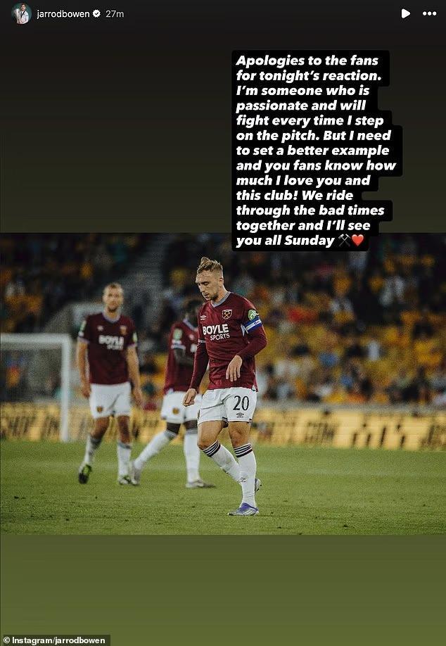 赛后,鲍文在社媒中发文向球迷道歉,“我为今晚的举动向球迷们道歉。我是一个充满激情的人,每次踏上球场我都会拼搏。但我需要树立更好的榜样,各位球迷知道我有多爱你们,也爱这支俱乐部。我们一起度过难关,周日见。”