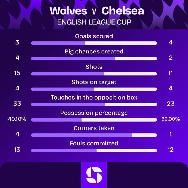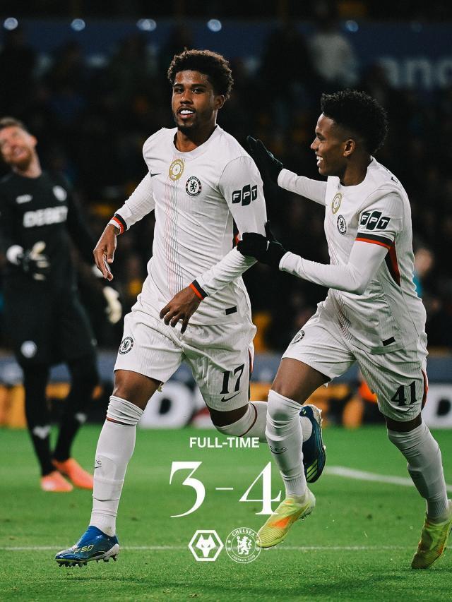 体坛周报全媒体原创狼队3比4切尔西48'阿罗科达雷,73'沃尔费,90+1'沃尔费/5'安德雷·桑托斯,15'泰里克·乔治,41'埃斯特旺,89'吉滕斯英格兰联赛杯第4轮,切尔西客场挑战新赛季英超仍