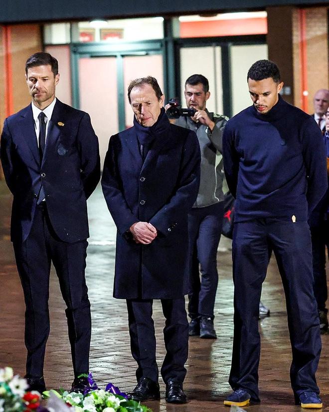 利物浦主场对阵皇马欧冠比赛前夕,阿诺德和皇马主帅阿隆索、队友赫伊森等人前往安菲尔德球场外若塔的纪念碑前献花。