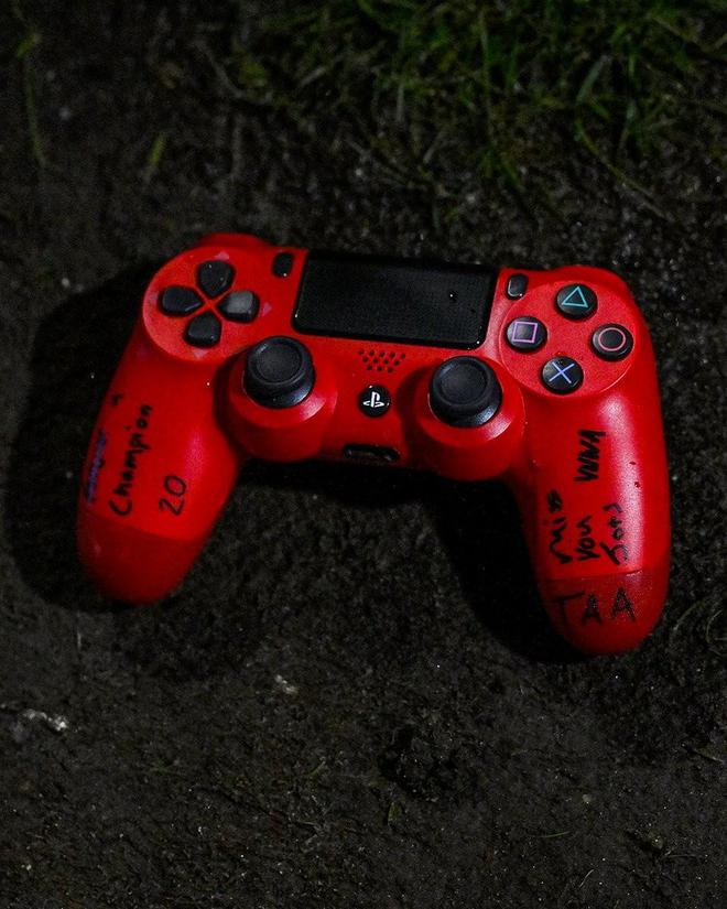 此外,阿诺德献上了一个游戏手柄,手柄上写着“冠军,20,想念你,YNWA,TAA”等字样。