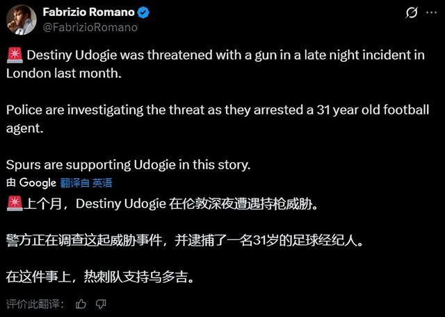 并非埃泽!热刺官方确认:乌多基曾遭经纪人持枪威胁