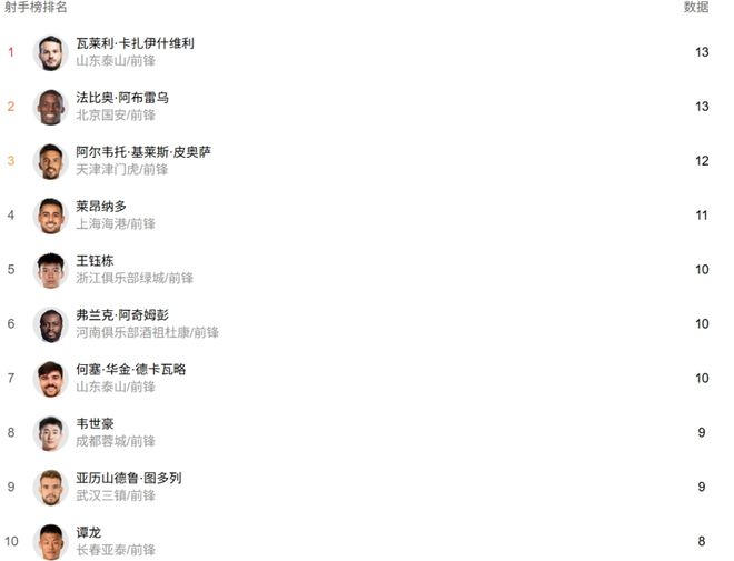 凭借着近期三轮进五球的绝佳表现,瓦科也在20轮后以13球与国安的法比奥·阿布雷乌并列射手榜第一位,如果继续出色发挥,他完全有可能拿到本赛季中超金靴奖。