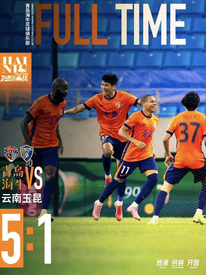 摆脱降级区!青岛海牛主场51大胜云南玉昆