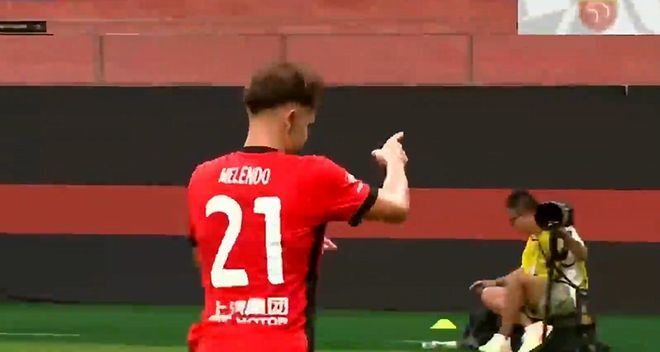 第54分钟,加布里埃尔左路突破之后横传,禁区中路无人盯防的梅伦多推射破门,打入了海港生涯处子球。