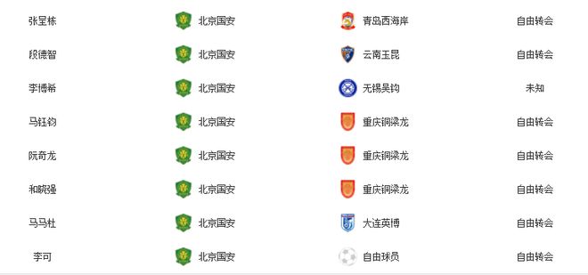 本赛季,共11位本土球员离开或暂离北京国安,详细名单如下。