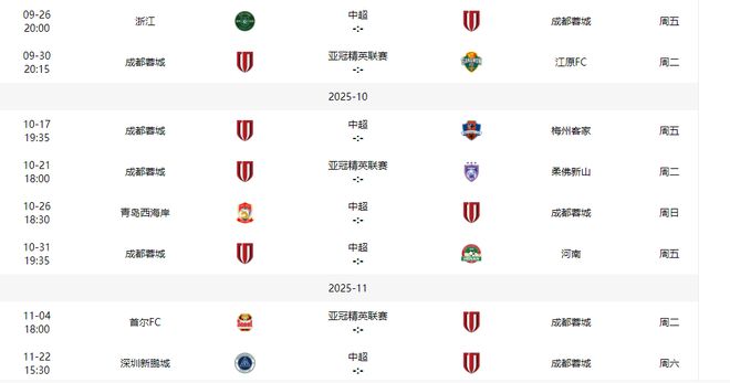 成都蓉城最后五轮有两个主场,三个客场