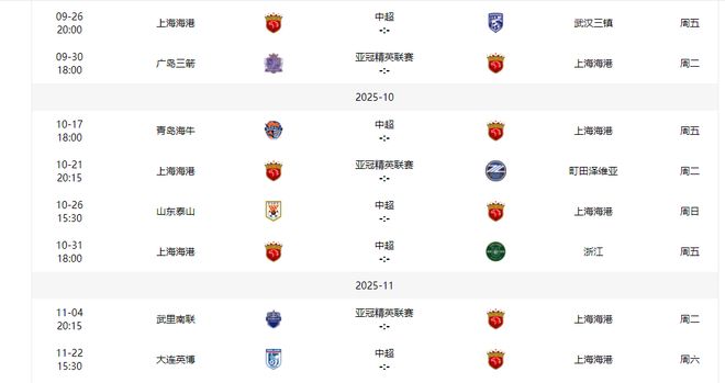 上海海港最后五轮有两个主场,三个客场